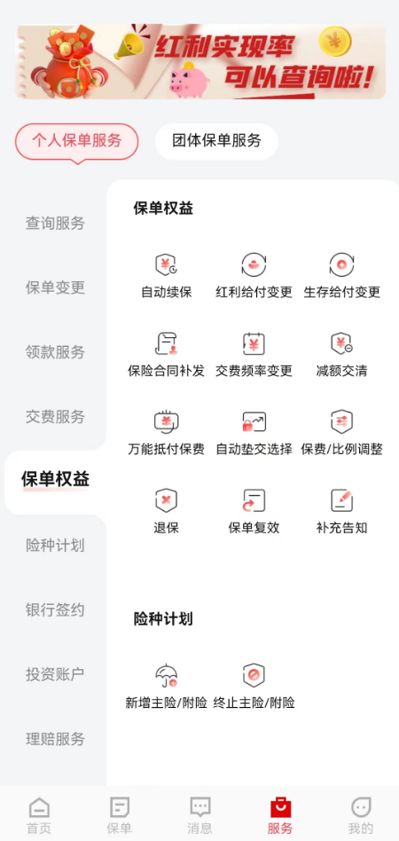 在頁面左側找到“保單權益”并點擊