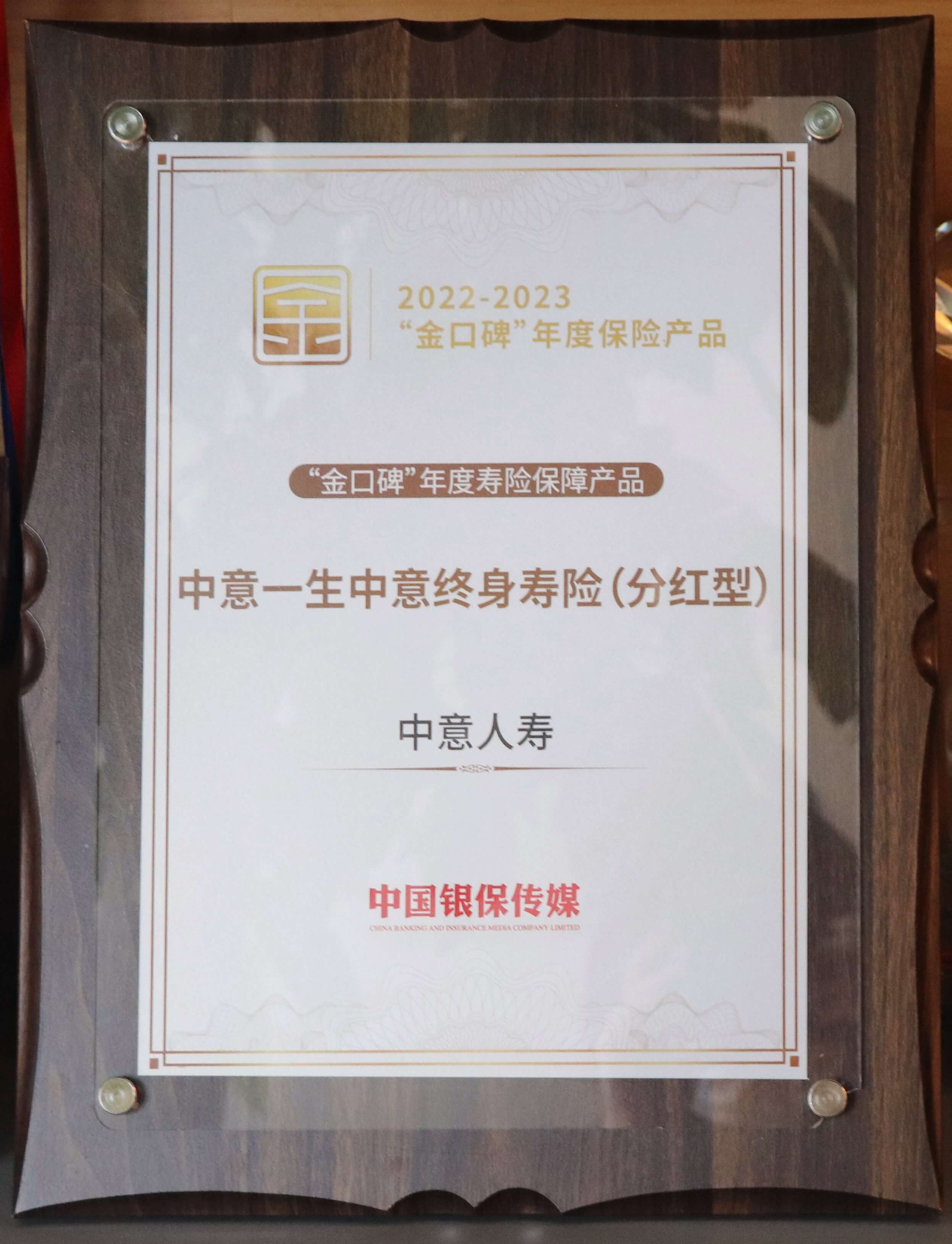 近日,由《中國(guó)銀行保險(xiǎn)報(bào)》主辦的“守正與突圍——首屆“金口碑”保險(xiǎn)產(chǎn)品創(chuàng)新大會(huì)”在上海舉行。會(huì)上發(fā)布了2022-2023“金口碑”年度保險(xiǎn)產(chǎn)品入選名單,中意人壽保險(xiǎn)有限公司推出的“中意一生中意終身壽險(xiǎn)(分紅型)”(以下簡(jiǎn)稱(chēng)“一生中意”),憑借可滿足消費(fèi)者對(duì)人身保障和家庭資產(chǎn)配置多重需求的產(chǎn)品優(yōu)勢(shì),獲評(píng)“金口碑”年度壽險(xiǎn)保障產(chǎn)品。